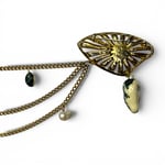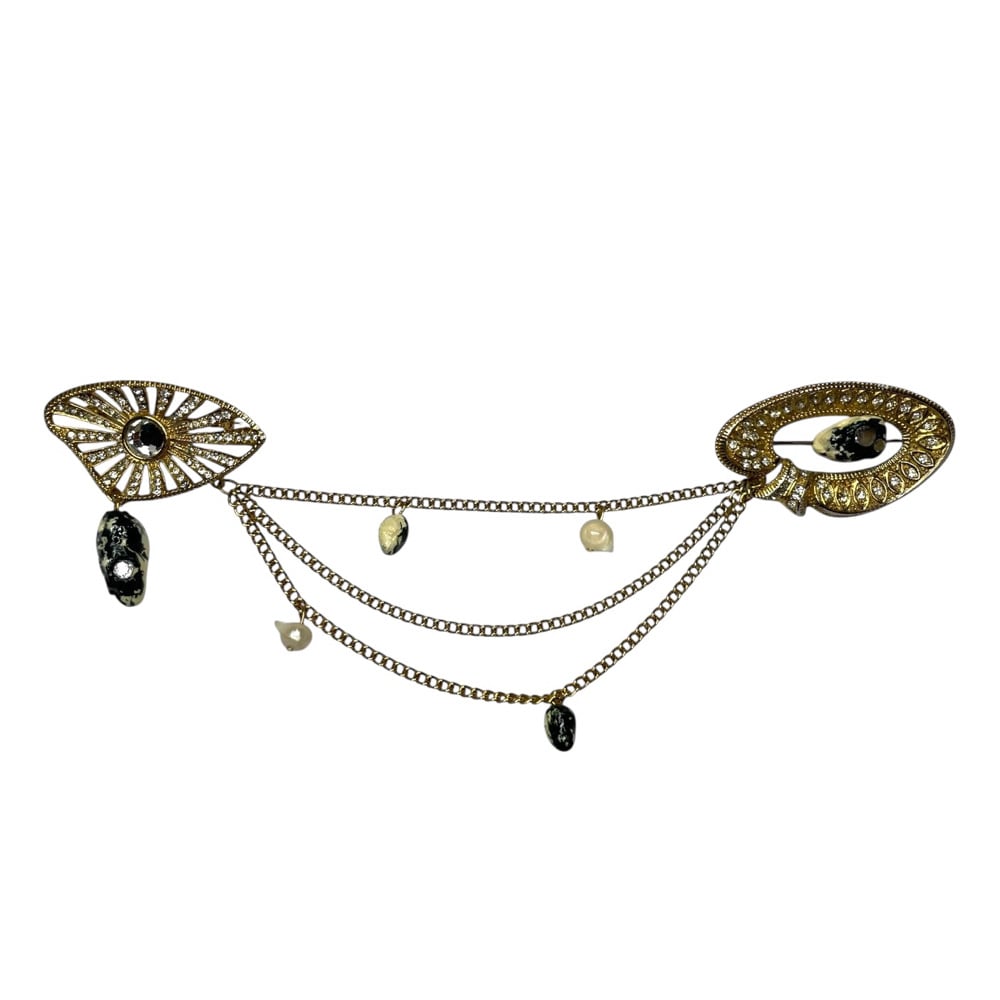 Vintage metal elements connected by gold-toned metal chains.
