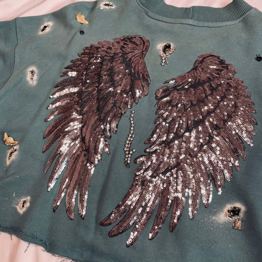 Large sequined angel wings on the back.