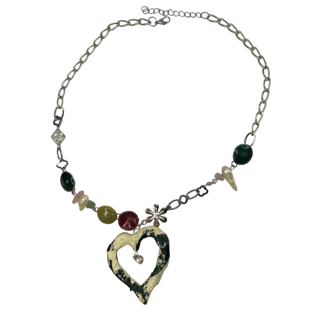At the center hangs a hand-sculpted heart-shaped dropping.