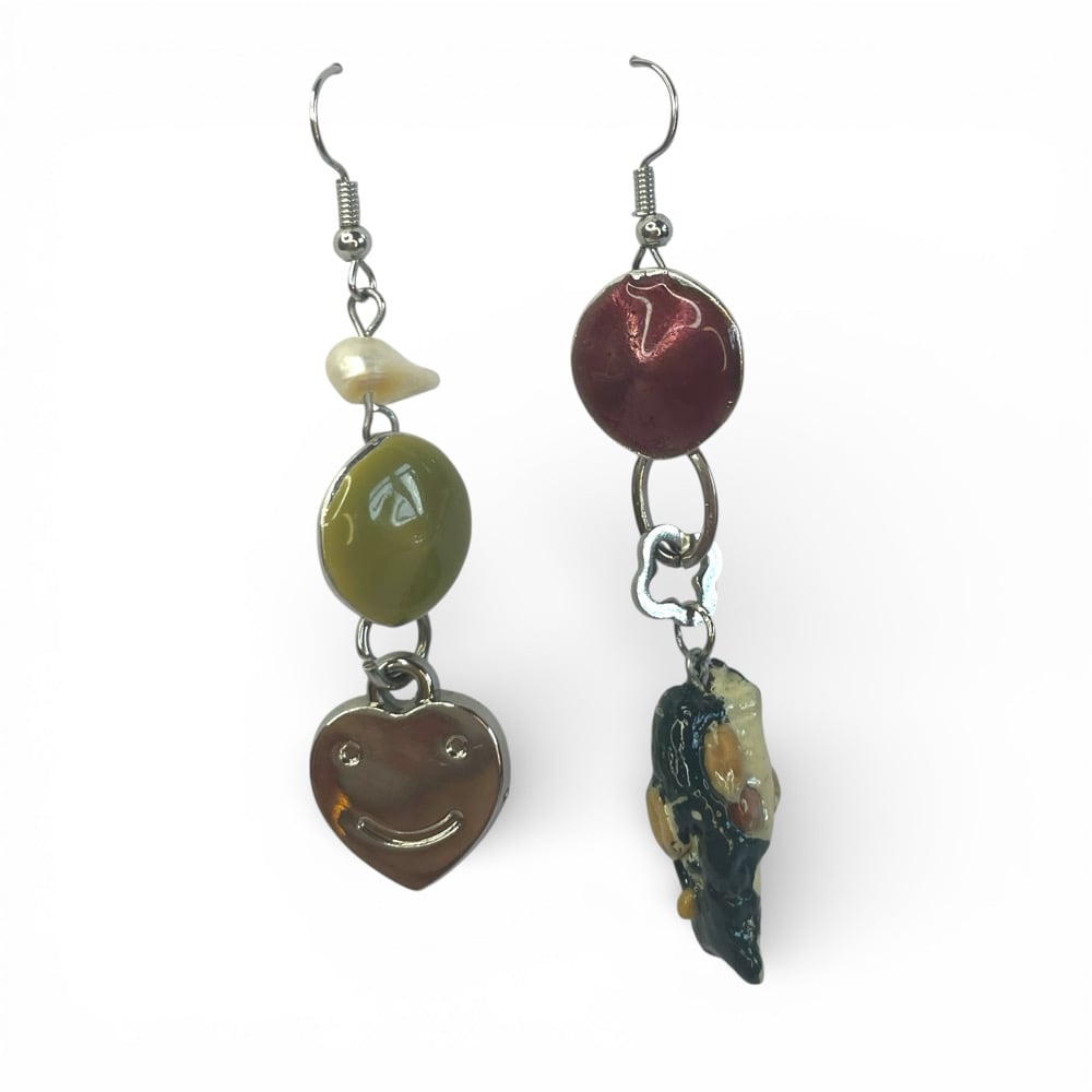 Asymmetrical earrings, one-of-a-kind.